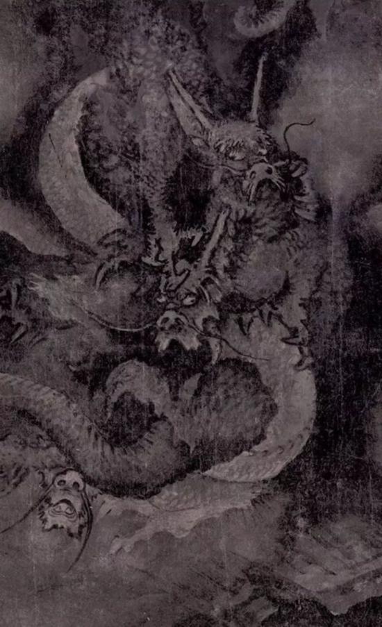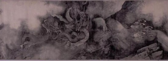 《五龍圖卷》卷末有“所齋”之印,據(jù)稱為陳容之作?!段妪垐D卷》共畫五龍,分置于山石、云霧和急流之中。五龍動態(tài)各不相同,生動有致,陰森恐怖,極富想象力。構(gòu)圖上虛實相映,有張有弛,氣勢驚人。