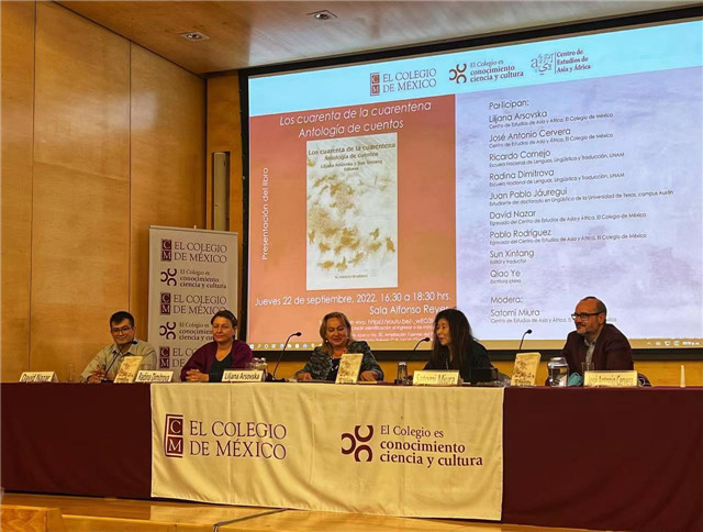 2022年是中國和墨西哥建交50周年。當?shù)貢r間9月22日下午,由中國作家協(xié)會資助出版的《隔離期的閱讀——中國短篇小說選》西班牙文版推介會以線上線下結合的方式在墨西哥學院阿方索·雷耶斯報告廳舉行。該書編者墨西哥學院亞非研究中心教授莉亞娜·阿索夫斯卡(Liljana Arsovska)、北京語言大學拉丁美洲研究中心主任孫新堂,譯者墨西哥學院亞非研究中心主任何塞·安東尼奧·塞維拉(José Antonio Cervera)、墨西哥國立自治大學副教授拉嫡娜(Radina Dimitrova)、墨西哥漢學家白佩蘭(Flora Botton)、羅豹鹿(Pablo Rodríguez Durán)、胡安·巴布羅·哈烏雷吉(Juan Pablo Jáuregui)、大衛(wèi)·納扎爾·庫蒂尼奧(David Nazar Couti?o)、羅杜安(Antonio Rodríguez Durán)以及中國作家喬葉等40余人參加活動。墨西哥學院亞非研究中心學術主管三浦里美教授(Miura Satomi)主持推介會。