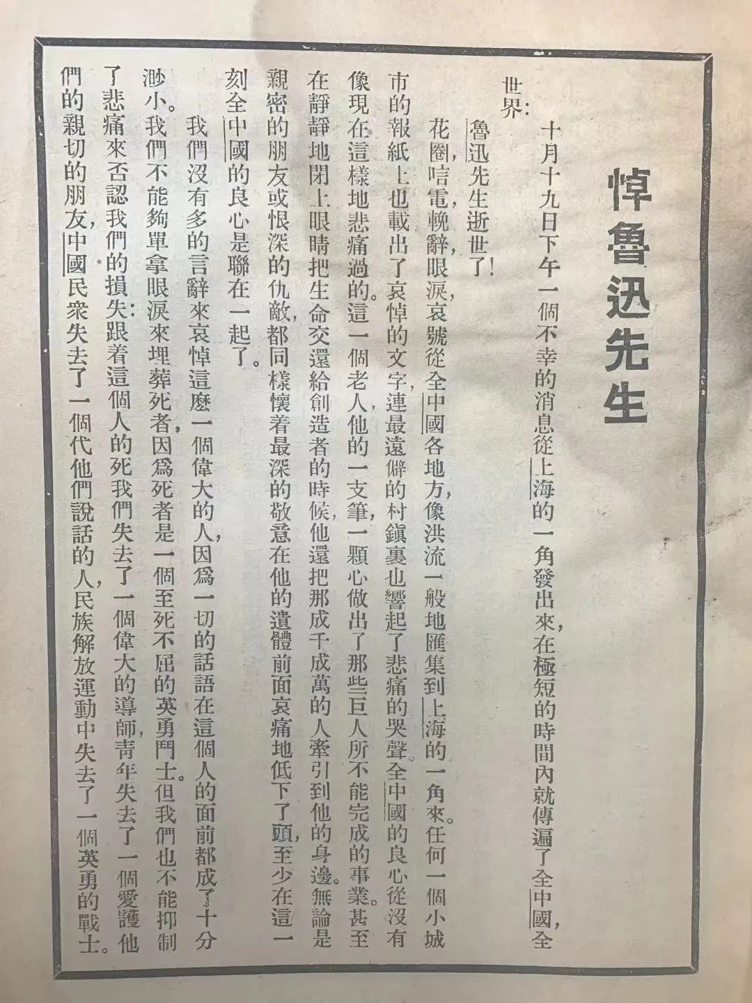 我們沒有多的言辭來哀悼這么一位偉大的人,因?yàn)橐磺械恼Z言在這個(gè)老人的面前都變成了十分渺小;我們不能單單用眼淚來埋葬死者,因?yàn)樗勒呤且粋€(gè)至死不屈的英勇戰(zhàn)士。但是我們也無法制止悲痛來否認(rèn)我們的巨大損失;這個(gè)老人的逝世使我們失去了一位偉大的導(dǎo)師,青年失去了一個(gè)愛護(hù)他們的知己朋友,中國人民失去了一個(gè)代他們說話的人,中華民族解放運(yùn)動失去了一個(gè)英勇的戰(zhàn)士。這個(gè)缺額是無法填補(bǔ)的。(巴金:《悼魯迅先生》)