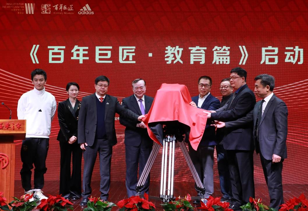 中國(guó)文聯(lián)黨組成員、副主席俞峰,國(guó)家大劇院院長(zhǎng)王寧,中國(guó)教育電視臺(tái)黨委書(shū)記、臺(tái)長(zhǎng)袁小平,中國(guó)舞蹈家協(xié)會(huì)主席、中國(guó)文學(xué)藝術(shù)基金會(huì)副理事長(zhǎng)馮雙白,阿迪達(dá)斯大中華區(qū)政府關(guān)系副總裁王若海,奧運(yùn)會(huì)冠軍吳靜鈺,《百年巨匠》出品人、總策劃楊京島,中國(guó)文藝志愿者協(xié)會(huì)理事、青年演員陳曉共同啟動(dòng)《百年巨匠·教育篇》。
