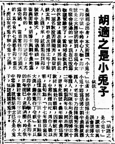 《胡適之是小兔子》,原載上?!读蟆罚?949年3月19日。