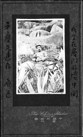 “今天照了一個照相,是在草木叢中,坐在一個洋灰的墳的祭桌上?!?/p>