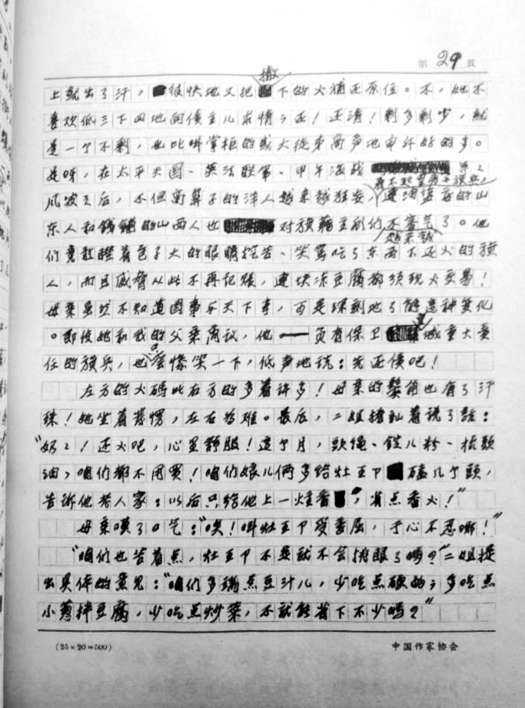 《正紅旗下》手稿一頁