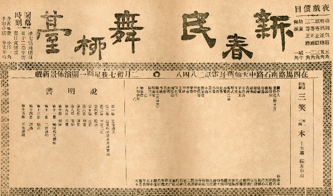 斗轉(zhuǎn)星移,物是人非,當(dāng)年話劇演出的情形已不可再現(xiàn)。但透過這些“僥幸”存留下來的演出說明書,可以真實(shí)地重現(xiàn)昔日劇場(chǎng)和演出的情形:如1913年9月20日晚上,新民社上演了趣劇《雌老虎》和正劇《謝女淚》。這兩場(chǎng)演出的劇情如何?演員為誰?編劇何人?均無史料留存。然《民國上海話劇演出說明書選編》恰好收錄了該劇的演出說明書,我們可以獲悉參加這次演出的主要演員有鄭正秋、王惜花、吳一笑、馮憐儂、黃幼雅、朱雙云等人;《雌老虎》一劇由鄭正秋編劇,《謝女淚》一劇由朱雙云編劇;《雌老虎》是一出家庭情感戲,其劇情大意為“施巧計(jì)潑婦收威”,《謝女淚》亦是家庭劇,劇情大意為“惡公婆虐待賢媳婦”。鄭正秋不僅是中國早期話劇運(yùn)動(dòng)的組織者、經(jīng)營者,亦是編劇和演員,百余年前的話劇演出不似今日編、導(dǎo)、演各司其職,當(dāng)年的演出尚無明晰之分工,常常一人兼司多職。據(jù)《新劇史》記載,“鄭藥風(fēng),號(hào)正秋……癸丑秋七月,首創(chuàng)新民劇社……以回天之力,底于中興”;朱雙云“歲癸丑,鄭君正秋倡辦新劇,雙云多有擘劃,新劇之盛,與有力焉”;吳一笑“東方曼倩一流人物,自號(hào)老古董,可以知其為人矣”;黃幼雅“春秋僅十五,顧其為劇擅哀感之長,并聲容之茂”。