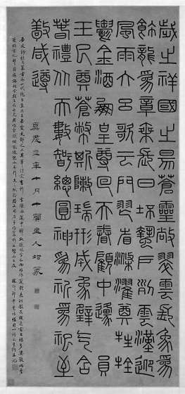 清錢坫篆書軸,書“郁金酒,鳳凰樽”之句。