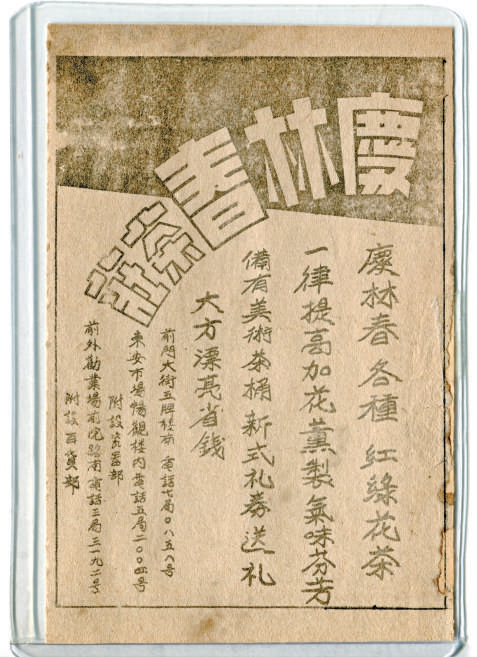 上世紀(jì)四十年代北京慶林春廣告紙。(作者自藏)