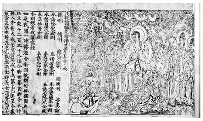 金剛經(jīng)開首與扉頁畫(唐),是中國現(xiàn)存最早有明確紀(jì)年的雕版印刷品