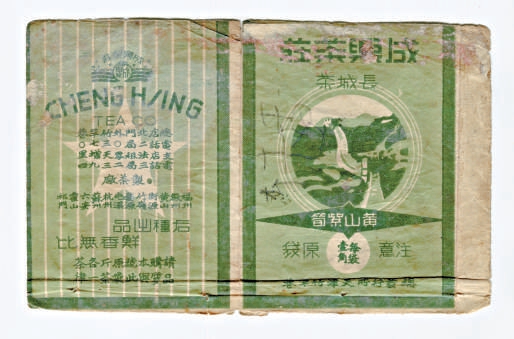 成興茶莊管理層觀察后,發(fā)現(xiàn)了消費(fèi)者的痛點(diǎn)。第一,上等茉莉花茶動(dòng)輒十多塊大洋一斤,老百姓就是買半斤也覺得吃力??墒钦l又不想喝好茶呢?哪怕是逢年過節(jié)偶爾享受一下也好啊。第二,傳統(tǒng)茉莉花茶一般都是半斤一包,顧客買回去再自己倒進(jìn)茶葉桶。可如果出門吃飯看戲,想喝順口的好茶就很難了。您總不能揣著大茶葉桶滿街溜達(dá)吧?顧客的痛點(diǎn),就是商家的商機(jī)。于是,1940年成興首創(chuàng)袋茶,將上等茉莉花茶分裝成了小包裝。筆者就收藏有一張成興茶莊小袋茶的包裝紙,品類是“黃山紫筍”,標(biāo)價(jià)為“每袋一角”。成興茶莊小袋茶包裝嚴(yán)格,紙質(zhì)堅(jiān)固,印刷美觀,有兩層紙包裝,外袋為模造紙,內(nèi)裝為有光紙,用漿糊封口,不論在分量質(zhì)量方面,都很讓用戶放心。老百姓在接待賓朋時(shí),花上五分或一角買上一袋,花不多的錢就能喝到一壺好茶,既方便又經(jīng)濟(jì),故而一下子十分暢銷。筆者收藏的這只成興小袋茶右側(cè)繪有萬里長城八達(dá)嶺一段,長城的“城”與成興的“成”諧音,故而此茶也稱長城茶。小袋茶左側(cè)有商標(biāo),是長城上繪有數(shù)顆明星,“城星”與“成興”諧音,又含有似長城之永固,如明星之高照的意義,可謂極盡巧思。
