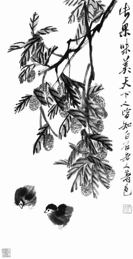 齊白石繪《荔枝小雞》