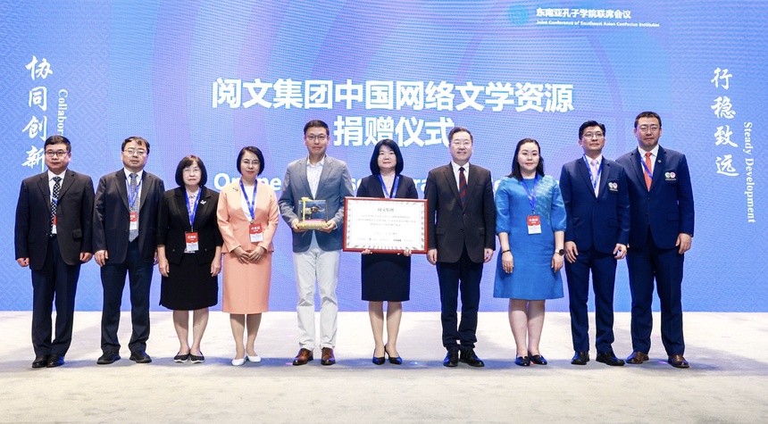 7月20日,由中國國際中文教育基金會主辦、北京語言大學承辦的東南亞孔子學院聯(lián)席會議在北京召開。會上舉行了閱文集團中國網(wǎng)絡(luò)文學資源捐贈儀式,中國國際中文教育基金會副秘書長、北京師范大學副校長周作宇等相關(guān)代表參加捐贈儀式。