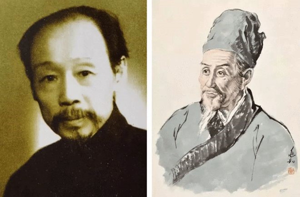 蔣兆和以岳父蕭龍友(左)為模特作李時珍(右)造像