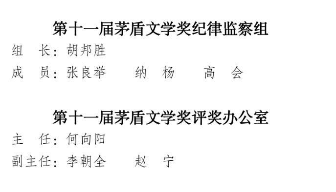 第十一屆茅盾文學(xué)獎評獎辦公室公告