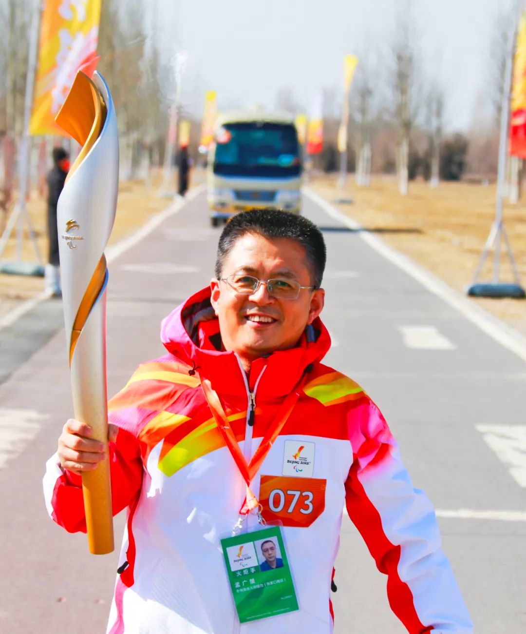 2022年3月3日,作為冬殘奧會(huì)火炬手,孟廣策在張家口懷來(lái)官?gòu)d水庫(kù)國(guó)家濕地公園參加完了火炬?zhèn)鬟f儀式,他在這里舉著火炬走了90米。有記者采訪他,他說(shuō):“這不單單是我的榮譽(yù),更屬于和我一樣奮戰(zhàn)在一線的廣大電力員工?!?/p>