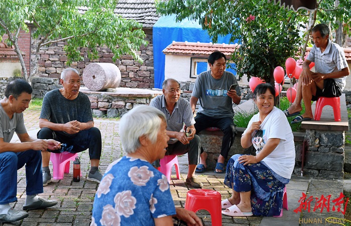 河南省林州市黃華鎮(zhèn)廟荒村,村民在小院聊天休閑。 湖南日?qǐng)?bào)全媒體記者 徐行 攝