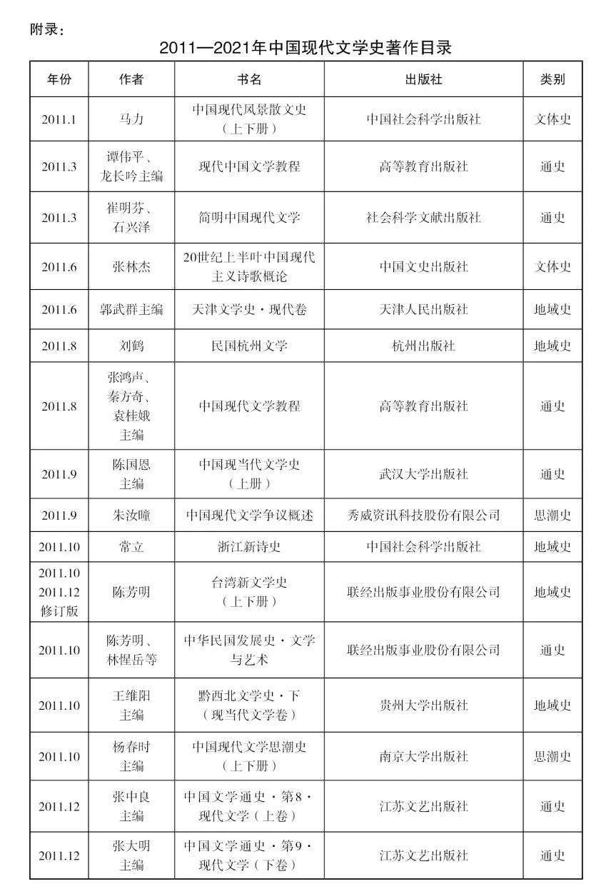 一 關于《2011—2021年中國現代文學史著作目錄》輯錄情況的說明