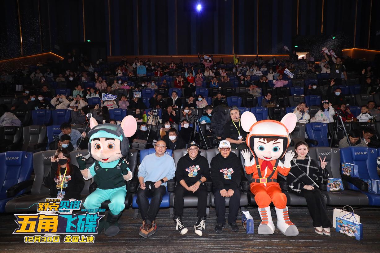 在12月23日舉行的該片首映禮現(xiàn)場(chǎng),鄭淵潔為觀眾分享了自己人生致勝的法寶,那便是優(yōu)良的道德品質(zhì)。他還談到,在1983年12月30日,舒克與貝塔于《舒克和貝塔歷險(xiǎn)記》中相逢,2023年12月30日是舒克貝塔組合誕生40周年。所以選擇在這天,讓舒克貝塔組合首次在電影院和讀者一起跨年。首映禮現(xiàn)場(chǎng),鄭亞旗導(dǎo)演表示第一次聽(tīng)父親夸自己,并且終于圓了在影院看見(jiàn)父親作品的心愿。此外,鄭淵潔的孫女、鄭亞旗的女兒鄭在也來(lái)到現(xiàn)場(chǎng),她還參與了影片配音。祖孫三人同臺(tái)驚喜分享溫暖了北京的冬夜。凱叔講故事App創(chuàng)始人凱叔也現(xiàn)場(chǎng)分享了其幕后配音的諸多樂(lè)趣,他談到給五角飛碟配音是因?yàn)樽约汉⑼瘯r(shí)期就對(duì)五角飛碟記憶深刻。