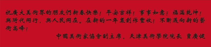 18、中國美術(shù)家協(xié)會副主席、天津美術(shù)學(xué)院院長 賈廣?。鹤V大美術(shù)界的朋友們新春快樂!平安吉祥!事事如意!福滿乾坤!與時代同行,與人民同在。在新的一年里創(chuàng)作豐收!不斷邁向新的藝術(shù)高峰!
