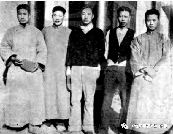 其實她和蔣仁宇的淵源也許可以追溯到更早一些,他們中學時代是孔德學校的前后同學,蔣仁宇生于1908年前,即20年代孔德學校的“蔣仁?!?。他寫于1934年的一篇文章中提到“我自小學到大學,永是和一個法文學校發(fā)生關(guān)系”,這個法文學?;究梢哉J為就是教授法文的北京孔德學校。1925年出版的《北京孔德學校旬刊合訂本》第二輯封面就是“十年級蔣仁裕繪”的木炭畫,蔣仁裕同時還是運動健將,尤其是乒乓球。合訂本內(nèi)還有一則體育部報告,1925年12月10日,十年級與北京師范比賽乒乓球,15∶3,孔德學校勝??椎鲁錾淼膶W生乒乓球水平不低,1929年初北平的報紙上就有一張“北平冬季球類比賽乒乓優(yōu)勝隊”的照片,如下圖,左一錢三強、右一蔣仁裕,中間的則是周作人長子周豐一。雖然沒有注明圖中五位所屬的學校,但除了左二的傅詢克暫時無法確定外,其余幾位都是孔德學校的,周豐一生于1912年,錢三強生于1913年,右二的金國光生于1906年。
