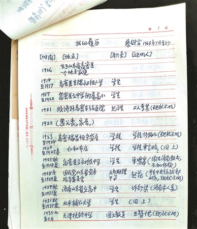 我們先來看蔡超塵高中及以后的人生經(jīng)歷,墨箋樓拍賣的1968年7月4日重抄的“我的履歷”顯示,蔡超塵1931年從山東省立高中畢業(yè)后考取了北平輔仁大學(xué)國文系,1935年畢業(yè)后到1949年前的14年間,擔(dān)任過多所學(xué)校的國文教員,其中1935年冬天到1937年夏天做了近兩年的《華北日報·每日文藝》副刊編輯。