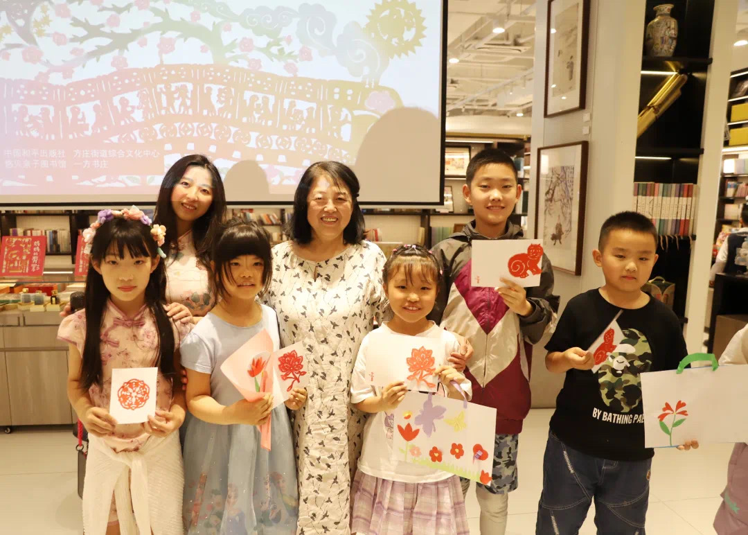 在作者和主持人瑩瑩老師的幫助下,孩子們發(fā)揮奇思妙想,用靈巧的小手將自己喜歡的事物,剪成一個(gè)個(gè)充滿童趣、獨(dú)一無(wú)二的作品,展現(xiàn)了一個(gè)個(gè)精彩紛呈的童話世界。劉雪純現(xiàn)場(chǎng)剪了花朵、小貓等剪紙,送給孩子們作為母親節(jié)的禮物。