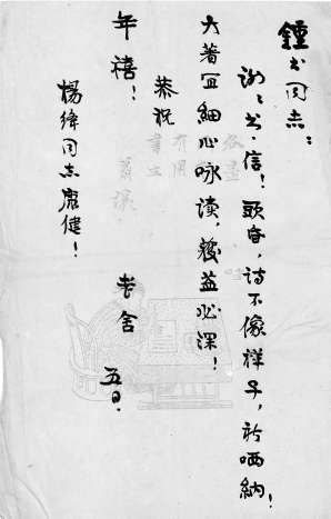 吳學(xué)昭心情沉重地“提著楊先生的大布袋回家”,又花了兩三周的時(shí)間才將袋內(nèi)信件,按照寫信人所寫第一封信的時(shí)間順序整理清楚,隨后開始閱讀。正如吳先生所評(píng)價(jià)的那樣,這本書中既有錢老夫子滿溢愛子之情的手諭,亦有長(zhǎng)楊先生十二歲的大姐(楊)壽康講述的妹妹所不詳知的家史往事的長(zhǎng)信,還有楊先生2014年生日那天,千里之外兩個(gè)小孩寄來“為楊奶奶祝壽”的充滿童趣的畫和信。其中數(shù)量最多的是中外同輩學(xué)人的來信。