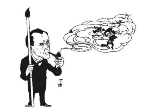 1926年,上海有一份名為《福爾摩斯》的小報(bào)創(chuàng)刊,一時(shí)間銷路很好,影響較大。這份《福爾摩斯》小報(bào)主要登載的內(nèi)容并非偵探小說,而是專門揭露一些不為人知的社會(huì)黑幕、名人八卦,或者貪腐新聞等。但其借用“福爾摩斯”之名,顯然就是看中了讀者心中大偵探福爾摩斯所具有的明察秋毫的能力。而在1927年7月9日,為了紀(jì)念《福爾摩斯》小報(bào)創(chuàng)辦一周年,還專門請(qǐng)畫家丁悚畫了一幅福爾摩斯像,名為《魑魅遁形》,頗有一種以福爾摩斯自比,以至令一切魑魅魍魎,皆無所遁形的意思。本篇所選第二幅圖像就是丁悚所繪的這幅福爾摩斯畫像,后來也收錄在我編的《福爾摩斯中國(guó)奇遇記》(上海社會(huì)科學(xué)院出版社,2024年)中,作為全書的“輯封”插圖。