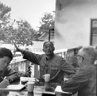 龔繼先(左一)跟隨王朝聞先生(右一)采訪(fǎng)昆劇名家王傳淞
