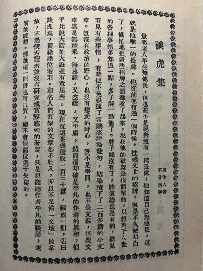看《談虎集》的廣告,雖然前后共刊載了八次,但內容則是完全一樣的。廣告全文如下: