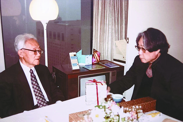 1984年5月在東京,野間宏來(lái)飯店拜訪巴金(左)。