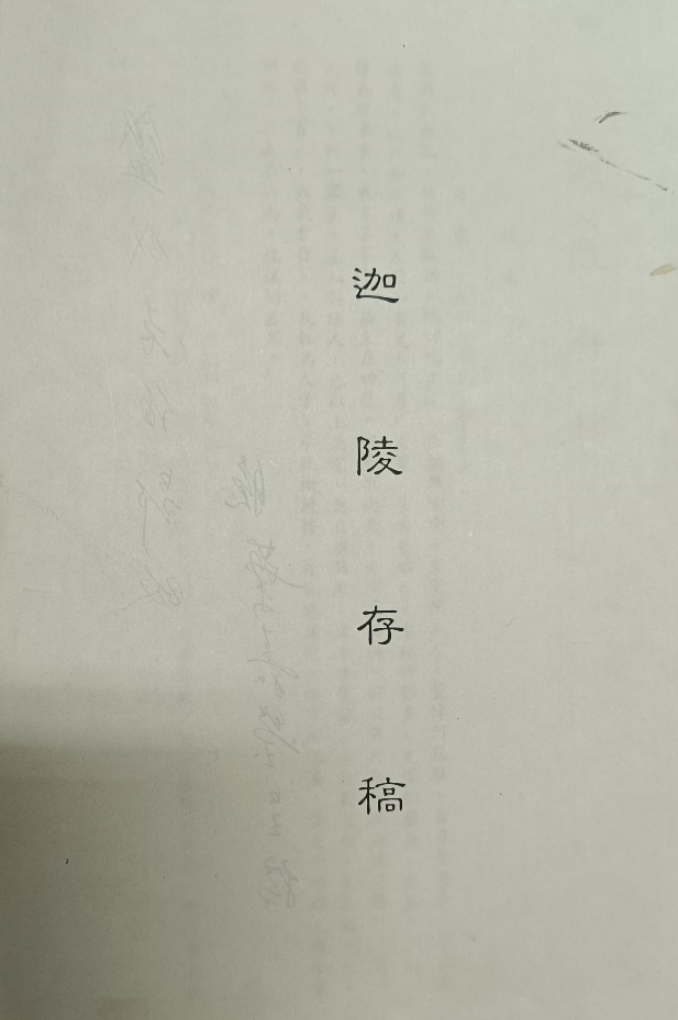 先生的大名我是早已聽說,但可惜沒有見過面。至今想起,仍為憾事。我趕忙打開檔案,翻閱這份存有先生手跡的珍貴資料。這是一份打印稿,第一頁豎排印著書稿名稱“迦陵存稿”。其背面寫有兩行字“盛成老伯郢政 晚葉嘉瑩呈稿”?!佰眱勺治液苌僖姷?,大致能猜到它的意思。為準(zhǔn)確把握這個詞,我特意查詢了一下,有關(guān)它的介紹大致如下:郢政意為郢正,斧正。明朝黃中在其 《重刻朱子年譜記》一文中,有這樣的表述:"且身處孤陋,書籍不全,暫作裨諶之補(bǔ),祈請諸君更為郢政。" 清朝魏際瑞在《與子弟論文》中是這樣的:"人以文字就質(zhì)于人,稱曰'正之'。忽念政者,正也。改稱曰'政'。又念正者必須刪削,乃曰'削政'。又念斧斤所以削也,轉(zhuǎn)曰'斧政'。又念善斧斤者莫如郢人,易曰'郢政'。"也許是這個詞有些偏僻,后來人使用的不是很多。這份打印稿豎排打印,右側(cè)裝訂,共27頁。書稿收錄了43篇詩詞,創(chuàng)作時間跨度長達(dá)42年,創(chuàng)作時間最早的是1941年先生17歲時寫的五言詩《詠懷》,“高樹戰(zhàn)西風(fēng),秋雨檐前滴。蟋蟀明空庭,夜闌猶唧唧?!挂箟艚希昝躁P(guān)塞黑。”創(chuàng)作最晚的是1983年創(chuàng)作的《蝶戀花》和《木蘭花慢·詠荷》。創(chuàng)作地點(diǎn)更是跨越半個地球,由北京到南京,由臺南到哈佛,由溫哥華到巴黎,由科隆到羅馬,由泰山到曲阜。先生在行萬里路時,手中的筆從未停歇,她一直在書寫自己心中的千言字。這些詩篇有寫景的,有詠物的,有感懷的,有送別的,先生用它們記錄著自己的人生足跡與世事滄桑。