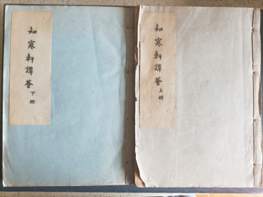 淡藍(lán)綠色的封面,左上部淺黃簽條書“知寒軒譚薈”五個(gè)字(分“上冊(cè)”與“下冊(cè)”),光照年久,已顯灰黃。正文共四卷210個(gè)筒子頁(yè),書有5厘米厚,鎖線裝訂,全書約20萬(wàn)字。一般來(lái)說(shuō),用鐵筆刻蠟紙成版然后油墨印刷,通??捎“侔耸住簿褪钦f(shuō),這部書經(jīng)歷這許多年的風(fēng)淘雨洗,能找到一部已很不容易了!