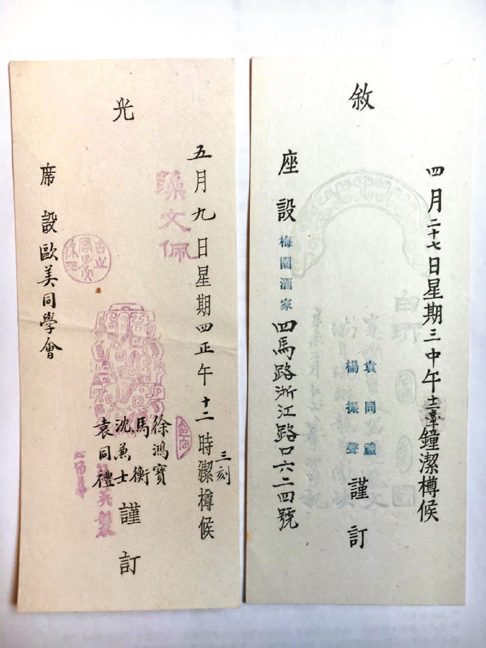 袁同禮為伯希和設(shè)宴之請柬,時間分別為1935年3月27日(請柬誤為4月)與5月9日