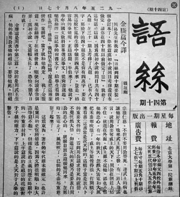 陳漱渝:《語絲》六題 ——紀(jì)念《語絲》創(chuàng)刊一百周年