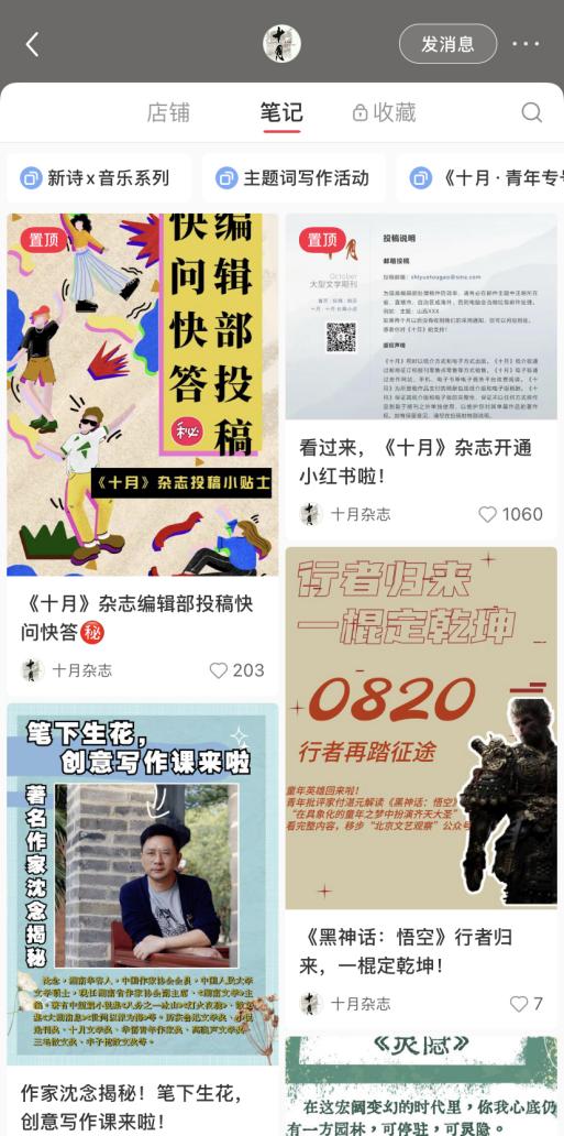 “十月雜志”小紅書(shū)號(hào)界面