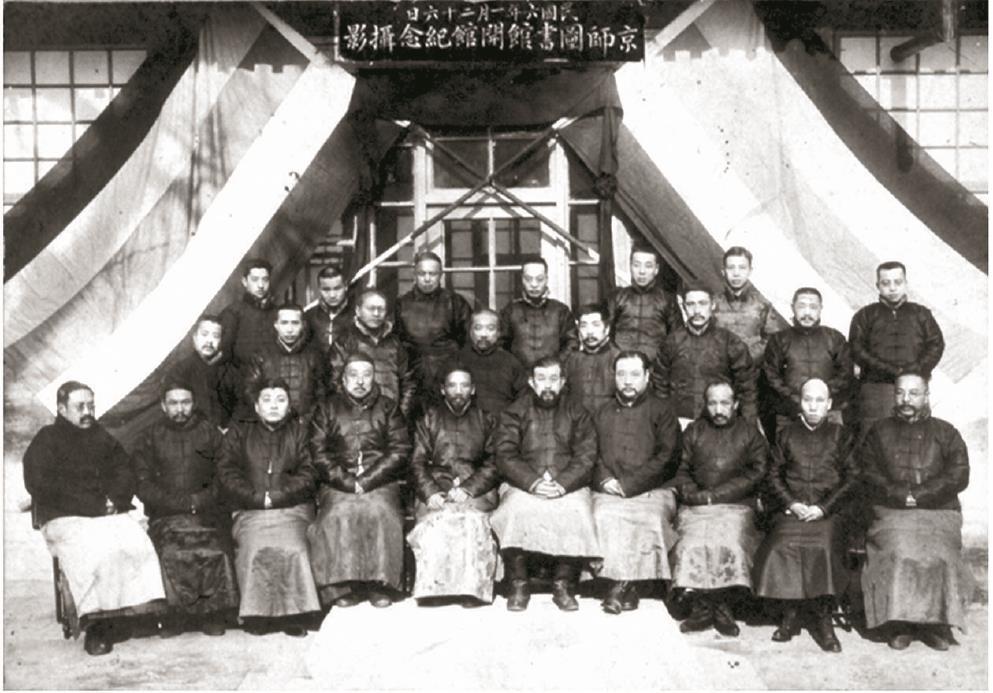 京師圖書館開館紀(jì)念合影(第二排右四為魯迅)