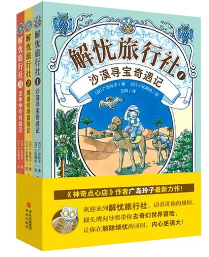 這是一套富有想象力的奇幻冒險故事書。生活中遇到煩惱的主人公,會由“解憂旅行社”安排,在貓頭鷹的帶領(lǐng)下,踏上不可思議的冒險之旅來解除煩憂,并在旅程中得到鍛煉與成長,體會到勇敢承擔責任、理解他人、相互幫助的重要性?!渡衬畬毱嬗鲇洝罚捍笪蛎懊笆Ш裙饬吮驹撊乙黄鸷鹊恼滟F果汁。為了重現(xiàn)果汁,解憂旅行社安排他去沙漠王國尋找水果。他投靠了販鹽的駱駝商隊,每天發(fā)揮所長,做飯換取食物和水。機緣巧合之下,他認識了藏于民間的夏爾丹王子,并卷入了巨大的危險之中……《魔獸牧場冒險記》:陸斗不小心打碎了媽媽的精靈擺件,他不敢承擔責任,甚至想要“離家出走”。解憂旅行社安排他去魔獸牧場寄宿。他天生熱愛動物,每天照顧各種各樣稀奇的魔獸,很累但也很高興,直到他在貓頭鷹向?qū)У募⑾?,打開了塞壬小屋的門……《龍神爭奪對戰(zhàn)記》:拓真和伸介是很好的朋友,他們一個性子急,擅長運動;一個性子慢,擅長手工。有一天,兩人吵了架,都想讓對方先給自己道歉。解憂旅行社安排他們?nèi)ゴ湫巧絽⒓育埳窆?jié),去幫助所在的村子獲得龍神的幫助,還給他們安排了一對同樣性格迥異的雙胞胎貓頭鷹當向?qū)А>烤拐l會獲勝呢……