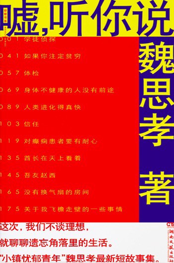 2017年,出版小說集《噓,聽你說》湖南文藝出版社