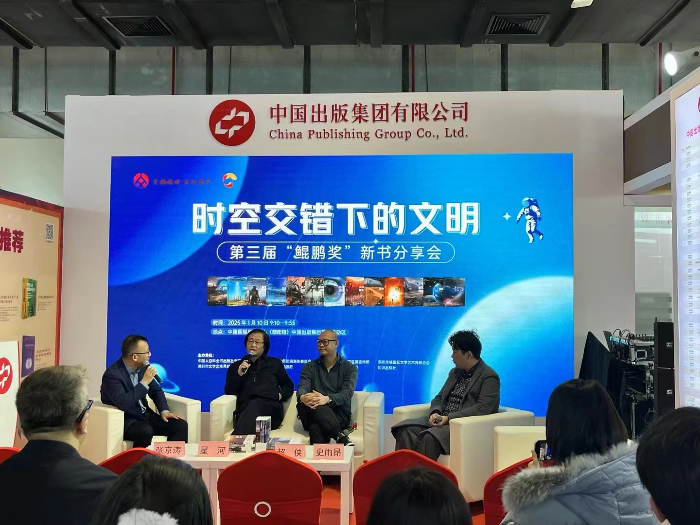 1月10日,“時空交錯下的文明:第三屆‘鯤鵬獎’新書分享會”在第37屆北京圖書訂貨會上舉行。中國作家協(xié)會科幻文學(xué)委員會委員、中國科普作家協(xié)會常務(wù)理事、科學(xué)文藝專業(yè)委員會主任星河,“鯤鵬獎”獲得者史雨昂等與會。“鯤鵬獎”獲得者歐陽子毅和徐煒軒以視頻的方式參加活動?;顒佑芍R出版社常務(wù)副社長張京濤主持。