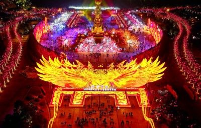 在上海,備受期待的豫園燈會已經(jīng)亮燈啟幕。伴著夜色步入豫園,古老的飛檐亭臺與璀璨的花燈交相輝映?!斑@里的奇獸異鳥造型新奇又震撼,我們就如同漫步于一個奇幻世界中。”江蘇無錫的游客李進深有感觸。