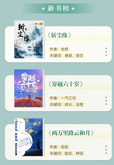 《斬塵緣》《穿越六十歲》《兩萬(wàn)里路云和月》登榜本期“悅讀新書榜”,這三部作品憑借多維題材折射出時(shí)代精神。作者怡然的新作《斬塵緣》,以玄幻色彩交織愛(ài)恨情仇,講述了一場(chǎng)跨越生死的探尋之旅。目前已由咪咕閱讀聯(lián)合新麗電視啟動(dòng)影視化開(kāi)發(fā)?!洞┰搅畾q》由擅長(zhǎng)女頻情感與現(xiàn)實(shí)溫情題材的作者一氣江河創(chuàng)作,巧妙融合了催婚、成長(zhǎng)、親情等當(dāng)代年輕人關(guān)注的話題,通過(guò)多視角敘事展現(xiàn)了主人公的成長(zhǎng)歷程?!秲扇f(wàn)里路云和月》出自中國(guó)作家協(xié)會(huì)會(huì)員、浙江省“新荷計(jì)劃”與“新雨計(jì)劃”人才茹若之手,該作品以浙西南小縣城為背景,講述西班牙華僑二代回鄉(xiāng)重建云上村的故事,兼具故土認(rèn)同與鄉(xiāng)村振興主題。