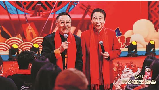 文脈賡續(xù)和藝術(shù)創(chuàng)造的累累碩果。多年來,我國曲藝始終堅(jiān)持曲隨時(shí)代的發(fā)展理念,從時(shí)代的文化和生活新變中汲取藝術(shù)靈感,推動(dòng)曲藝題材內(nèi)容和形式手法的創(chuàng)造創(chuàng)新。在2025賀歲曲藝晚會的舞臺上,歌曲《曲山藝海》把多種藝術(shù)元素和表現(xiàn)手段融合在一起,佐以現(xiàn)代科技視聽效果,令人耳目一新。喜歡曲藝的觀眾大概都熟悉《玲瓏塔》,在這臺晚會上,上海說唱和西河大鼓的深度合作,以“雙數(shù)塔”的形式,在不同藝術(shù)的對話中擦亮了這一傳統(tǒng)節(jié)目,使之煥發(fā)出新的藝術(shù)光彩。事實(shí)上,多曲種合作演繹正是本臺晚會最重要的看點(diǎn)之一。開場秀《天南地北賀新春》中的《小拜年》《拜大年》由二人轉(zhuǎn)和二人臺這兩種各具特色的北方曲種同臺表演,《戍邊的幸?!犯侨诤线\(yùn)用了評書和朗誦兩種藝術(shù)形式。這些都讓我們感受到曲藝具有無比充沛的生命力,“曲藝+”將以更多令人期待的打開方式,促使我們在這個(gè)新的春天里奔赴更加美好的生活。