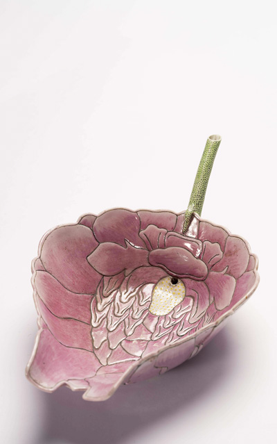 南通博物苑藏清光緒粉彩“秋操紀(jì)念”荷花形吸杯。