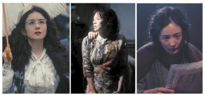 從左至右分別為《醬園弄·懸案》中趙麗穎飾演的西林、章子怡飾演的詹周氏和楊冪飾演的王許梅。