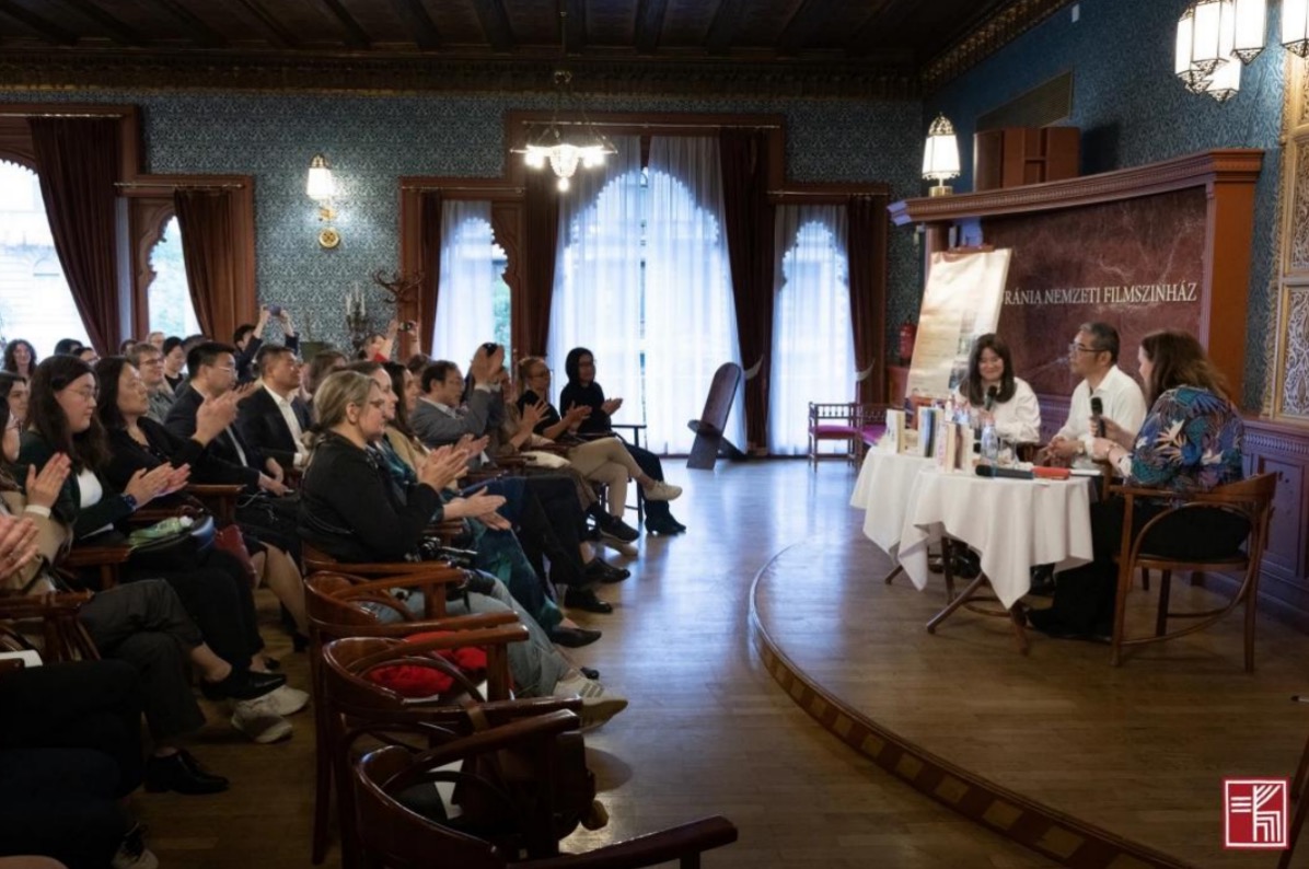 蘇童訪匈的另一場(chǎng)活動(dòng)在烏拉尼亞(Uránia)國(guó)家電影劇院內(nèi)舉辦,主題是“電影與文學(xué)”,這也是“印象亞洲中國(guó)電影周”活動(dòng)的一部分。匈牙利電影專家杜達(dá)斯·維克托(Dudás Viktor)、漢學(xué)家與電影美學(xué)家凱勒·米蕾拉(Keller Mirella),以及卡羅里·加什帕爾新教大學(xué)副教授、“影像亞洲中國(guó)電影放映周”創(chuàng)始人瓦拉第·維多利亞博士(Dr.Váradi Viktória)與蘇童同臺(tái)對(duì)話,深度探討中國(guó)電影與文學(xué)的關(guān)系,60余位中匈文學(xué)與電影愛好者參加了觀影和交流活動(dòng)。