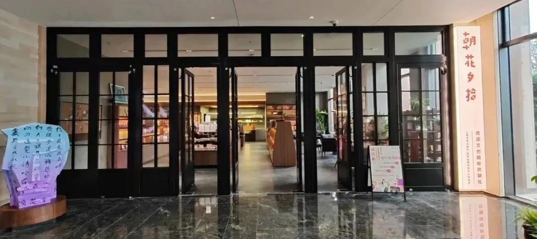 一層右側(cè)的朝花夕拾·文創(chuàng)咖啡供銷社率先開業(yè),空間敞亮,更顯古樸雅致。店門口,一套從朝內(nèi)166搬來的辦公桌椅和書架靜靜陳列,桌上那盞熟悉的綠色玻璃罩臺燈,柔光流淌,瞬間將人拉回朝內(nèi)166的舊時光——仿佛一切從未改變。