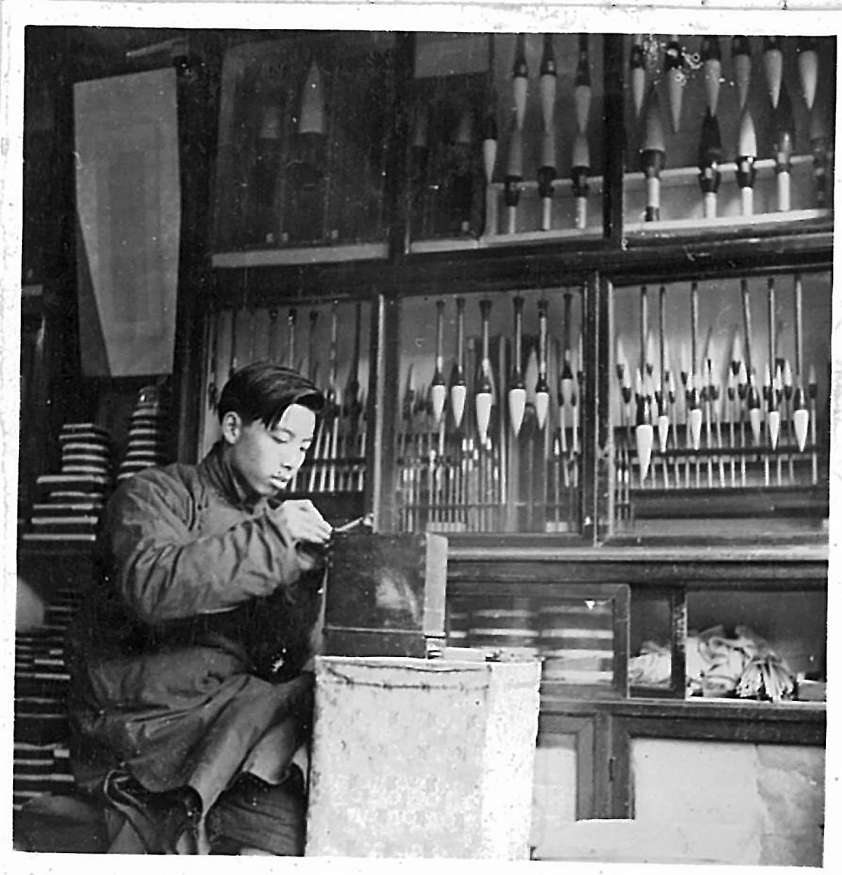 老話說“窮學(xué)手藝,富學(xué)買賣”,富人家的孩子在“前店”學(xué)站柜臺,大褂一穿,迎來送往,要識文斷字,頭腦靈活,不僅舉止言談要得體,還要有一點制筆、修理技術(shù),如果再能畫會寫,就更好了。窮人家的孩子則在“后廠”里學(xué)手藝,在筆店,學(xué)手藝的年齡大約是十二三歲,大概三年才算出徒。出徒后,有在固定的作坊里干的,有單干的,有串工的,養(yǎng)家糊口不難,但能像戴月軒那樣自己開店的,寥寥無幾。