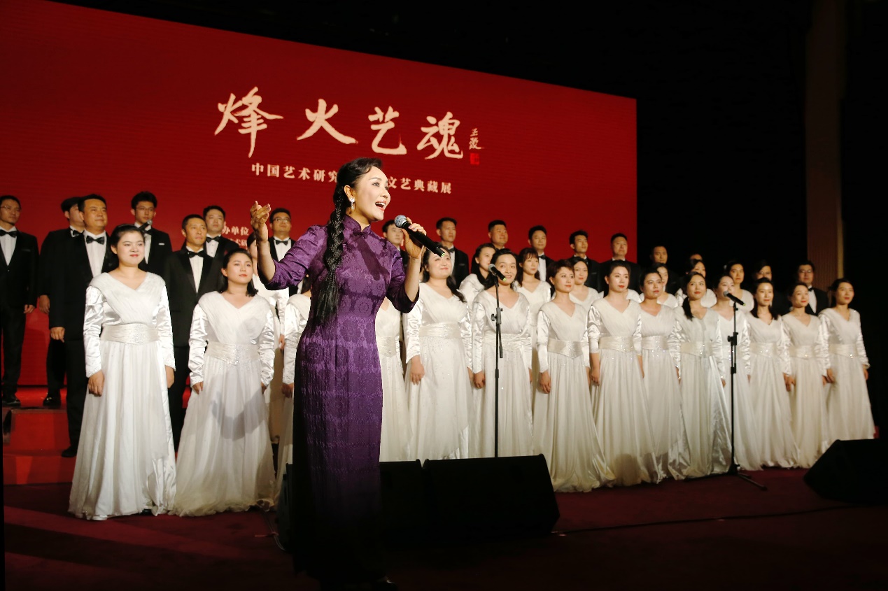 開幕式上,由中國藝術研究院職工、研究生院教師和碩博士生,以及中央歌劇院合唱團成員共同組成的國藝合唱團,以飽滿的熱情,深情演繹了《八路軍進行曲》《南泥灣》《保衛(wèi)黃河》三首經(jīng)典抗戰(zhàn)歌曲,以情緒激昂、氣勢磅礴的歌聲,紀念抗日戰(zhàn)爭的偉大勝利,贊頌偉大的抗戰(zhàn)精神。