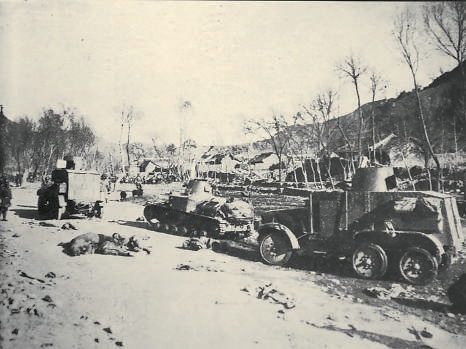 日軍也不客氣,從第6師團(tuán)調(diào)來了殺手锏——日本獨(dú)立戰(zhàn)車第一中隊(duì)。全隊(duì)有89式中型坦克9輛,92式裝甲車3輛,這些鐵家伙從高地右側(cè)迂回過來,“德械師”竟全無用武之地。