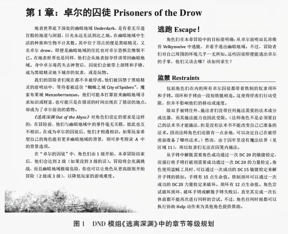 我們對(duì)比初版(OD&D)規(guī)則和后續(xù)規(guī)則會(huì)發(fā)現(xiàn),初版規(guī)則中并沒(méi)有怪物的等級(jí),只有角色的等級(jí),主持人只能通過(guò)怪物的數(shù)值來(lái)估算挑戰(zhàn)難度。而后續(xù)我們熟知的“怪物挑戰(zhàn)等級(jí)”(Challenge Rating.CR)則在2000年的第三版規(guī)則中才首次被引入。我們可以由此推出,作為優(yōu)化補(bǔ)充內(nèi)容而出現(xiàn)的CR系統(tǒng),是玩家與DM在游玩中實(shí)際需求的回應(yīng):CR系統(tǒng)幫助DM平衡遭遇戰(zhàn)難度,方便DM規(guī)劃出適合不同等級(jí)的玩家的冒險(xiǎn)內(nèi)容。在這個(gè)“規(guī)劃”中,根據(jù)怪物等級(jí)、出現(xiàn)地圖與相關(guān)聯(lián)情節(jié)的“內(nèi)容模塊”已經(jīng)漸漸出現(xiàn)。名為“挑戰(zhàn)等級(jí)”而非“怪物等級(jí)”,其實(shí)在背后反映著游戲?qū)ν婕医巧?jí)的引導(dǎo)。升級(jí)和新內(nèi)容模塊之間的對(duì)應(yīng)關(guān)系已經(jīng)開(kāi)始出現(xiàn),開(kāi)放之下的“線性”已初露端倪。