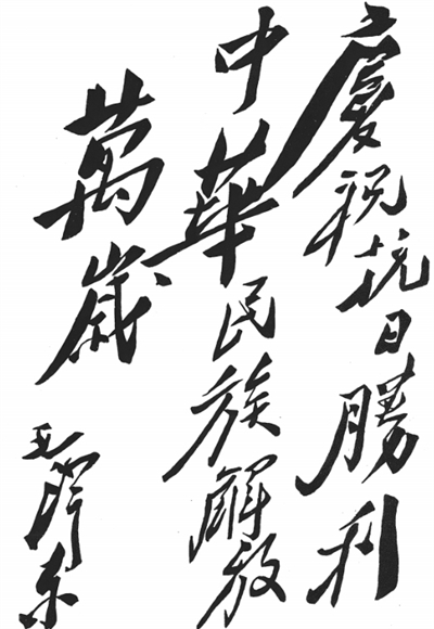 毛澤東為重慶《新華日?qǐng)?bào)》題詞“慶??谷談倮?,中華民族解放萬(wàn)歲!”